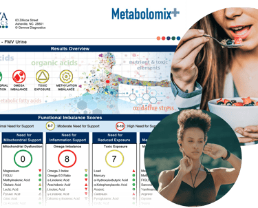 يساعد فحص Metabolomix+ من Genova الأطباء والمختصين على تحديد الاختلالات الوظيفية الكامنة في العناصر الغذائية، وتوجيه خطط تغذوية مخصّصة بدلًا من الاعتماد على توصيات عامة. ويدعم هذا النهج الاستهداف الدقيق للعناصر الغذائية للمساعدة في تقليل الالتهاب، وتعزيز إنتاج الطاقة، ودعم صحة الجهاز الهضمي، وتحسين الوظائف الأيضية العامة.