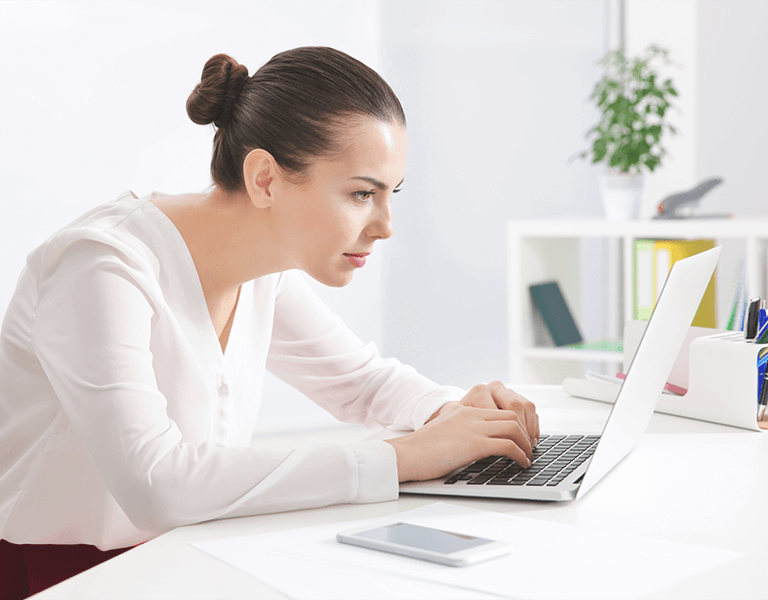 يؤدي قضاء فترات طويلة على المكاتب أو أمام أجهزة الكمبيوتر أو الهواتف المحمولة غالبًا إلى وضعية الرأس المتقدمة إلى الأمام واستدارة الكتفين.